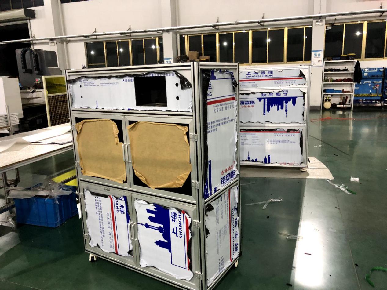 了解到王總我當(dāng)時(shí)就問一下王總的機(jī)架的具體承重及尺寸,并且我們互相建立了微信技術(shù)小群1 對(duì)1技術(shù)參與直接溝通方案設(shè)計(jì)。約在2天經(jīng)過技術(shù)的1對(duì)1的技術(shù)服務(wù),我們雙方把方案敲定了。因?yàn)闀r(shí)間的關(guān)系,我們第一次試制了5臺(tái)。自動(dòng)化設(shè)備用鋁型材框架+鈑金做門。并與7月30號(hào)順利交期。王總他們收到貨后經(jīng)過性能測(cè)試,鋁型材框架在承載力和重量及生產(chǎn)效量能都遠(yuǎn)遠(yuǎn)大于原來鈑金焊接機(jī)架。王總為此非常開心。